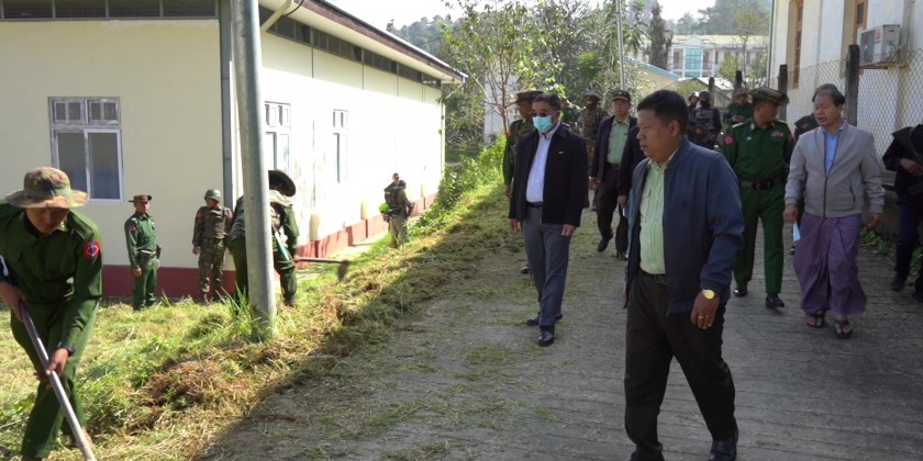 Chin State Chief Minister Dr. Wong Hsun Htan accompanied by the State ministers for Security and Border Affairs, Transportation, Social Affairs and Commander of Stationed Tactical Operation Command (Hakha) oversaw the collective cleaning tasks carried out by military officers and Tatmadawmen from Stationed Tactical Operation Command, departmental officials and members of Myanmar Police Force at the Hakha People’s Hospital on 14th October.