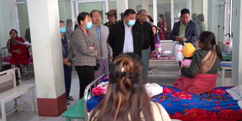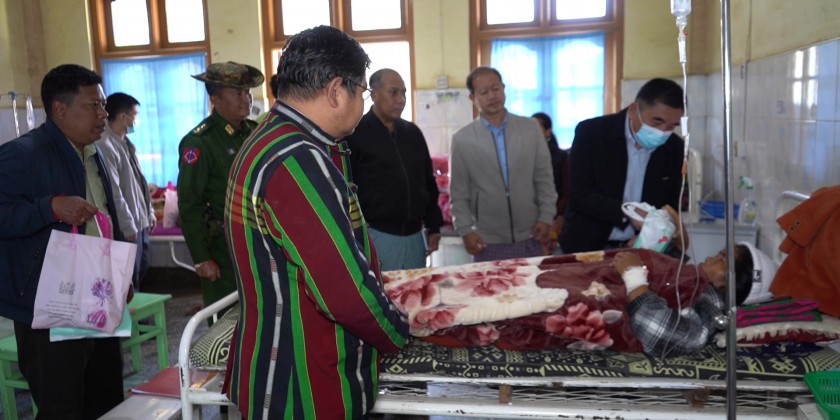 Then, the Chief Minister met with the medical superintendent, medical personnel and Tatmadaw medical officers and provided assistances. Afterwards, the Chief Minister comforted patients who are receiving medical treatments at the inpatient ward and provided assistances.