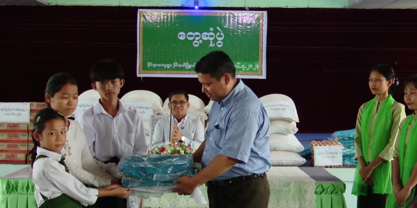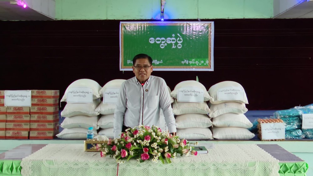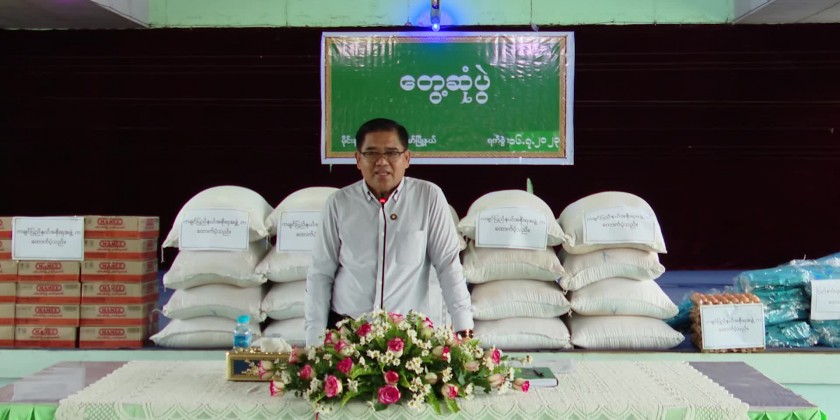 Then, the Chief Minister, State Chief justice and State Minister provided 20 bags of rice, 20 boxes of instant noodle, 200 eggs, stationeries for the students, 800,000 Kyats of cash assistance and 8 bags of rice for 8 teachers and an elder extended words of thanks and Catholic bishop fater Yon War prayed for them and gave words of encouragement.