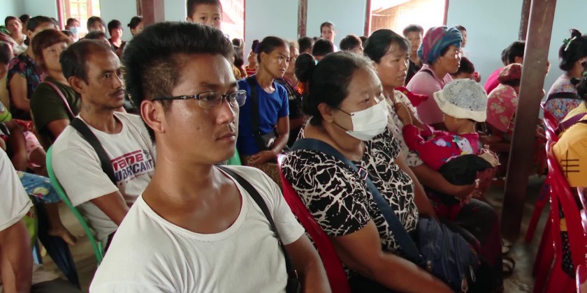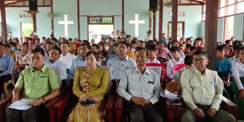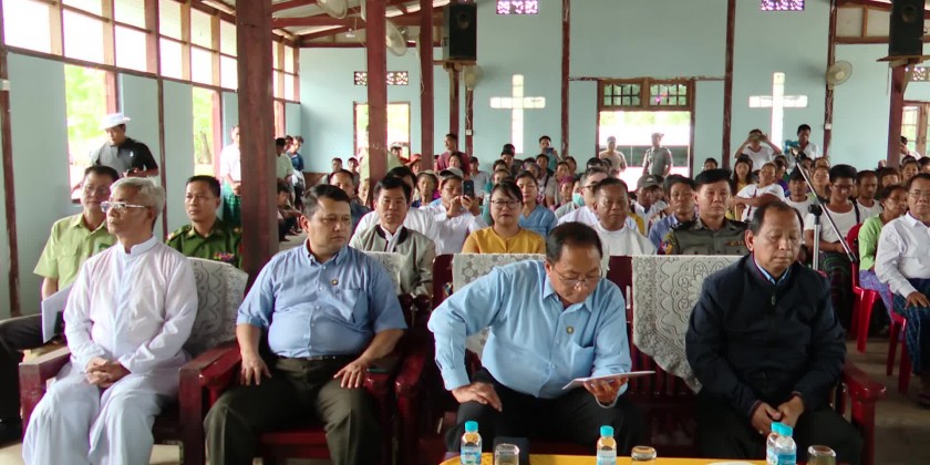 Kachin State Chief Minister U Khet Htein Nan and officials met with the people displaced from Nan San Yan area on the Myitkyina-Bamaw Road in Waimaw Township, Kachin State and sheltered in RC Church, Maina AG camp, Da Bat Yan, Kazuu villages and Maina RC camp in the afternoon on 16th July and gave words of encouragement.