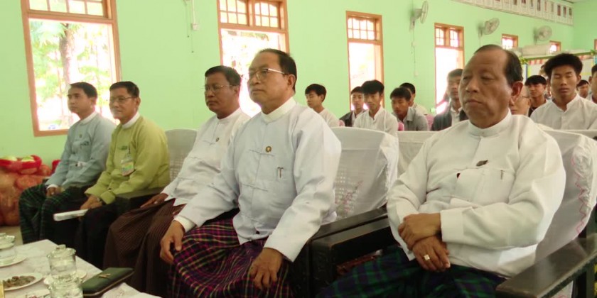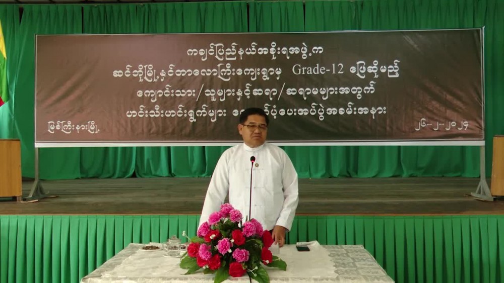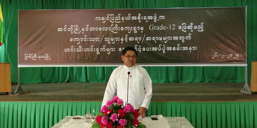 Kachin State Chief Minister U Khet Htein Nan together with Chief Justice of State High Court, State Ministers visited No (8) Basic Education High School in Yan Gyi Aung Ward in Myitkyina Township in the afternoon on 26th February and encouraged the teachers and students who will sit for Grade-12 matriculation examination from Hsin-Bo and Tarlawgyi Villages and are studying in camp in Myitkyina due to the current situations.