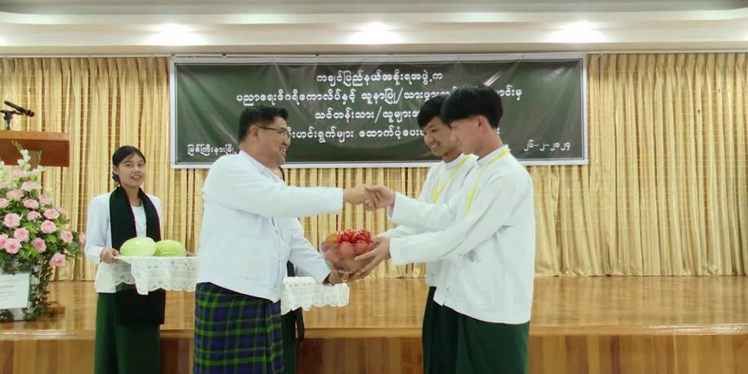 Consequently, the Chief Minister and party met with the Nursing and Midwifery trainees at the hall of Nursing Training School in DuKaHtaung Ward in Myitkyina, gave necessary suggestions and provided tomato, cauliflower, potato, pork, chicken meat and eggs.