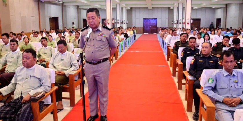 The Kayah State Government met with the public service personnel who are serving in Loikaw Township, gave words of encouragement and provided rice, edible oil, bean and cash assistance at the State Hall in the afternoon on 11th of May and the Chief Minister U Zaw Myo Tin, State government Ministers, State/District/Township level departmental personnel attended the meeting.