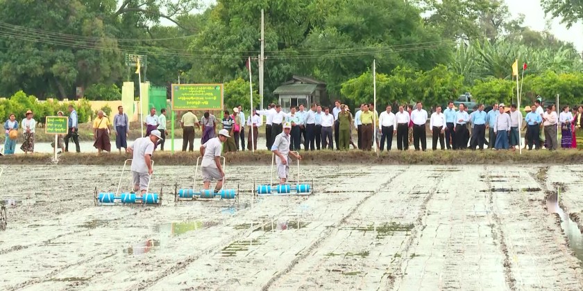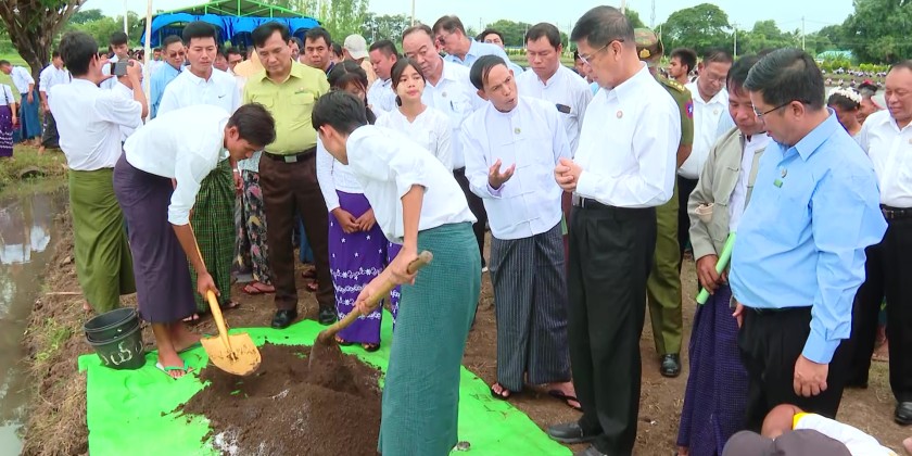 Mandalay Region Chief Minister U Myo Aung attended a meeting, presentation, and field demonstration at the Institutes of Agriculture and Livestock in Patheingyi Township, Aungmyaythasan District on August 5. The event focused on the development of the agricultural sector and achieving target yields for key crops in the Mandalay Region. It also included the handover of drum seeders.