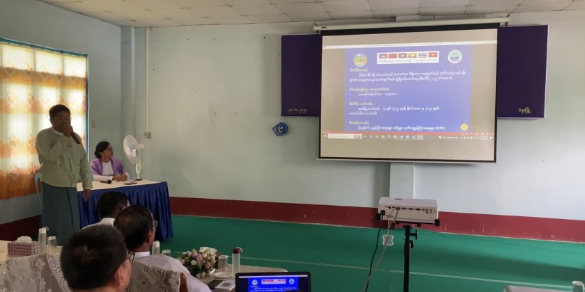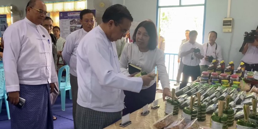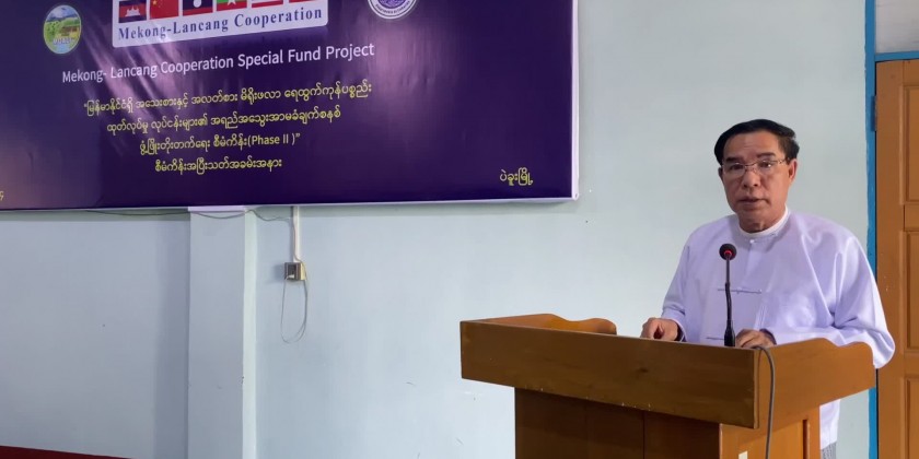 Then, the Chief Minister attended the closing ceremony of the Mekong-Lancang Cooperation-funded Small and Medium-Sized Traditional Aquatic Product Quality Assurance System Development Project (Phase II), held at the Fisheries Training School in Bago. He delivered a speech, followed by a welcome address from U Myint Zint Htoo, Deputy Director General of the Fisheries Department, Ministry of Agriculture, Livestock, and Irrigation. Project Director U Nyunt Win presented an update on the project's activities through a Power Point presentation.