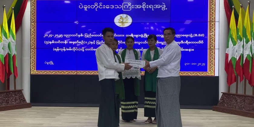 A ceremony was held to provide educational assistance to students of the 2024-2025 academic years, the 5-year Bachelor of Education (B.Ed.) Course Batch No. 12 of the University for the Development of the National Races of the Union and the Nationalities Youth Resource Development Degree Colleges (Yangon/Sagaing) at the Tawwin Hamsa Hall of the Bago Region Government Office, on October 31st.