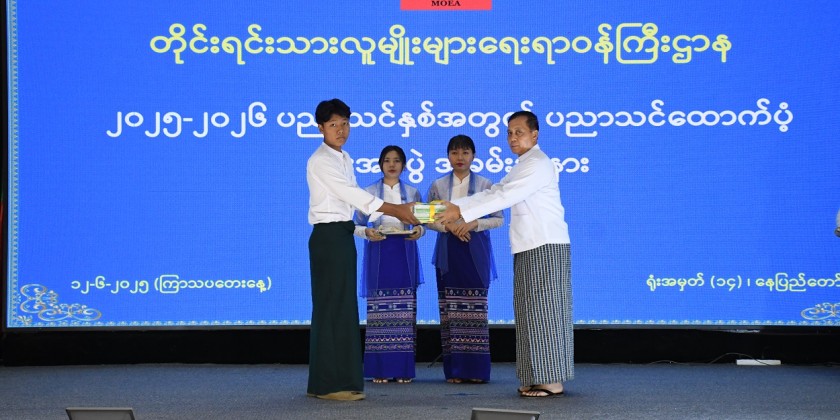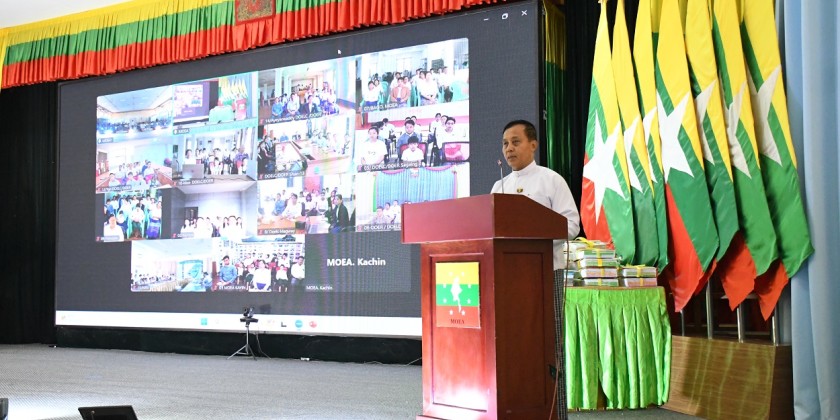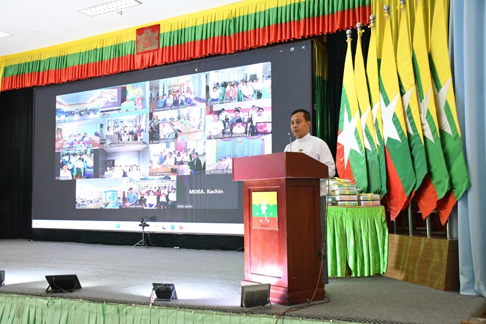 Union Minister for Ethnic Affairs, Khun Thant Zaw Htoo, attended and delivered an opening address at the ceremony for providing educational supports and stationery for the 2025-2026 academic year by the Ministry, held in the ministry's meeting hall in the morning on June 12.
