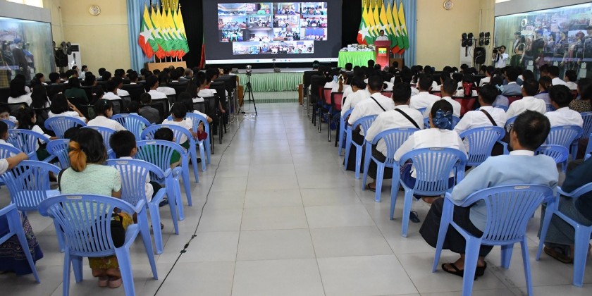 Following that, the Deputy Minister and other officials also presented educational support funds and stationery to the students, and the ceremony was concluded. During the ceremony, for the entire ministry, a total of over 13 million kyats in support funds was provided to a total of 229 students at the primary, middle, high school, and university levels.