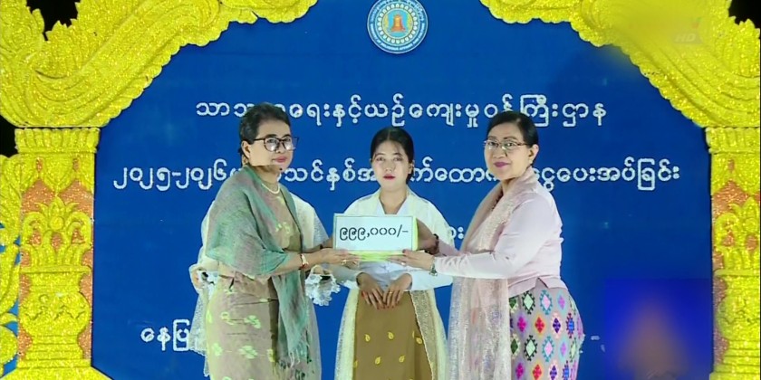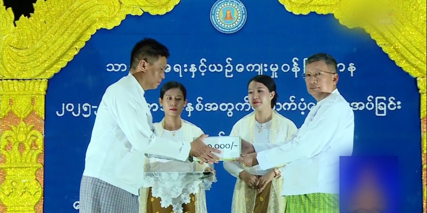 Subsequently, the educational assistances for the 2025-2026 academic year were presented by Union Minister U Tin Oo Lwin, Deputy Ministers U Aye Tun and Daw Nu Mya Zan, and Permanent Secretary U Myint Oo.