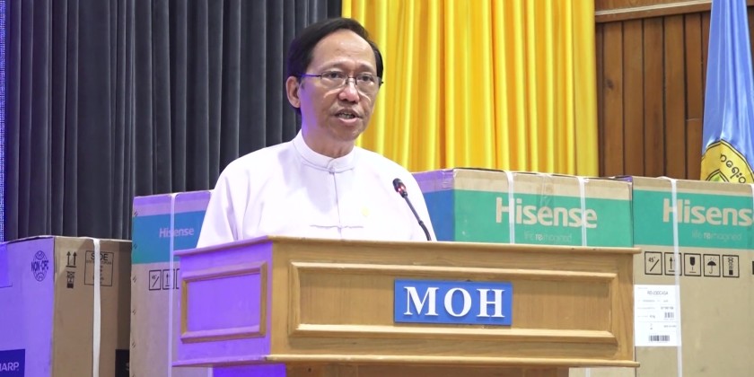 Speaking on the occasion, Union Minister for Health Professor Dr. Thet Khine Win stated that the basic electronic home appliances such as refrigerators, televisions, electric rice cookers, electric kettles, electric curry cookers and irons were provided for the staff families whose accommodations on the ground floor were affected by the earthquake from the National Disaster Management fund with the aim of fulfilling their daily basis needs under the guidance of the Head of the State.