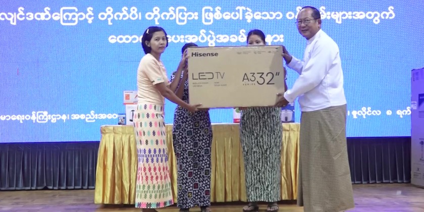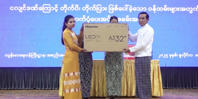 Then, the Union Minister together with the deputy minister and directors-general handed over 44 refrigerators, 44 televisions, 44 electric rice cookers, 44 electric kettles, 44 electric curry cookers and 44 irons to 44 staff families of the Ministry of Health.