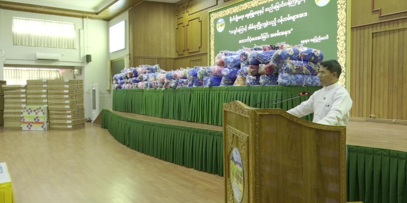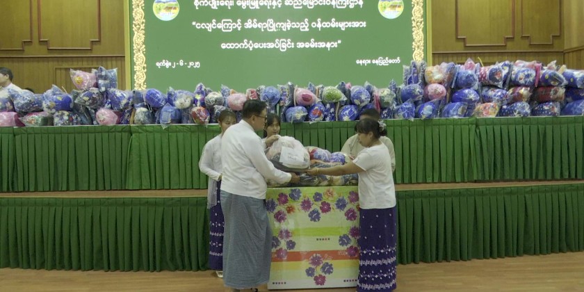 An event of providing clothing and essential supplies to the civil service personnel whose homes were damaged by the earthquake was held at the Assembly Hall of the Union Minister’s Office of the Ministry of Agriculture, Livestock and Irrigation on June 2.