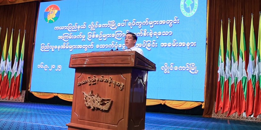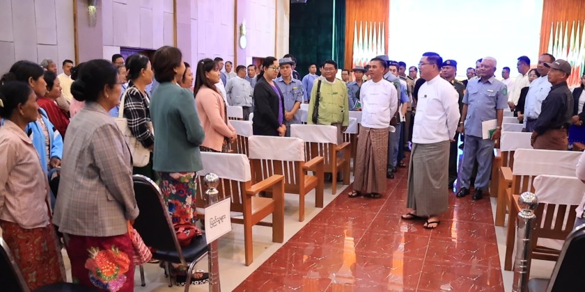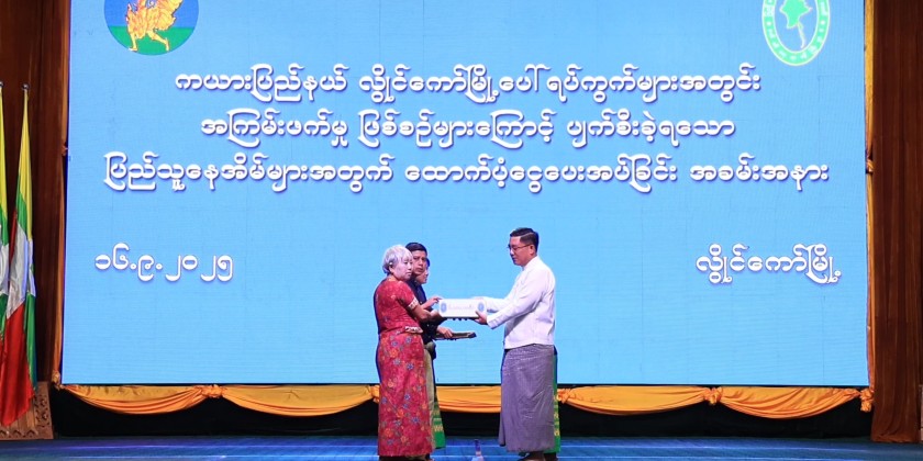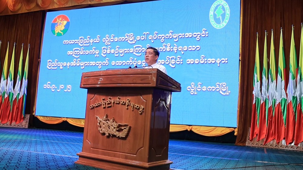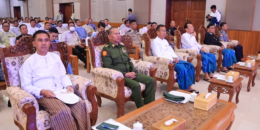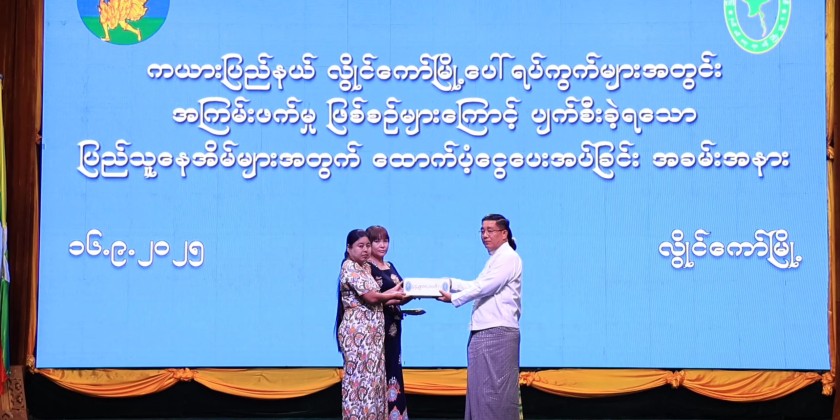 The ceremony to provide financial assistance for homes damaged by terrorist incidents in Kayah State, organized by the Ministry of Border Affairs, was held at the State Hall in Loikaw on September 16. The event was attended by State Chief Minister U Zaw Myo Tin, Deputy Minister for Border Affairs Ma-J Gen. Phyo Thant, Commander of Regional Operations Command, the State Chief Justice, members of the State Government, departmental staff, and the residents.