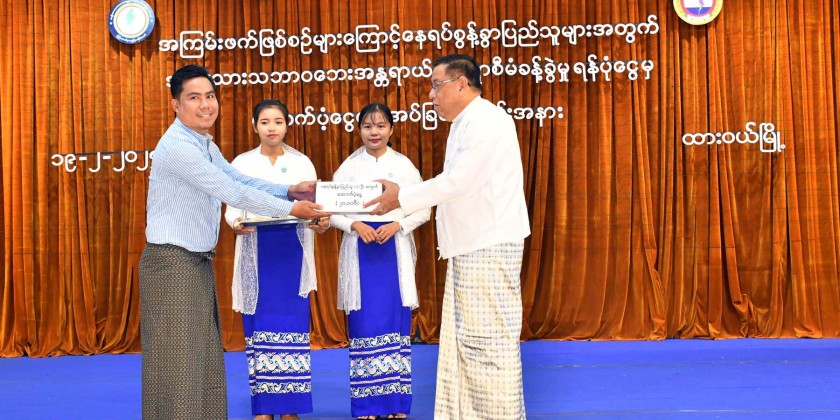 A ceremony to provide financial assistance from the National Natural Disaster Management Fund for people temporarily displaced due to terrorist incidents was held at the City Hall in Dawei, Tanintharyi Region, on Wednesday.