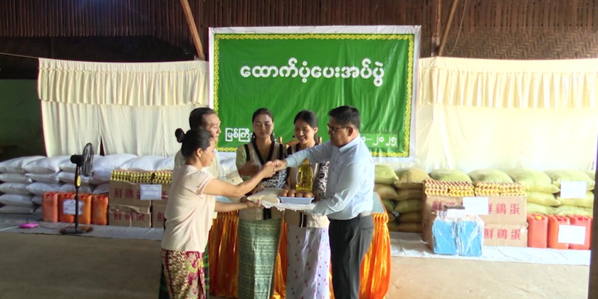 In Shwe Set Ward, the Chief Minsiter and party provided rice bags, oil, eggs and stationery for the 199 displaced households and heard reports on requisite supplies to ensure the convenience accommodation of the displaced persons.