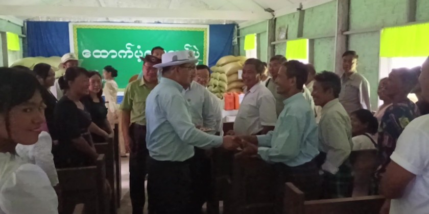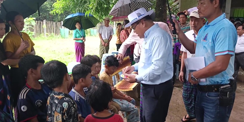 Upon reports, the Chief Minister assured to provide necessities in timely manner and coordinated with the departmental officials. In Maw Taung Village of Naung Nan Village Tract, the Chief Minsiter and party provided rice bags and oil for the 81 displaced households, heard reports on construction of temporary houses and village road and fulfilled necessities.