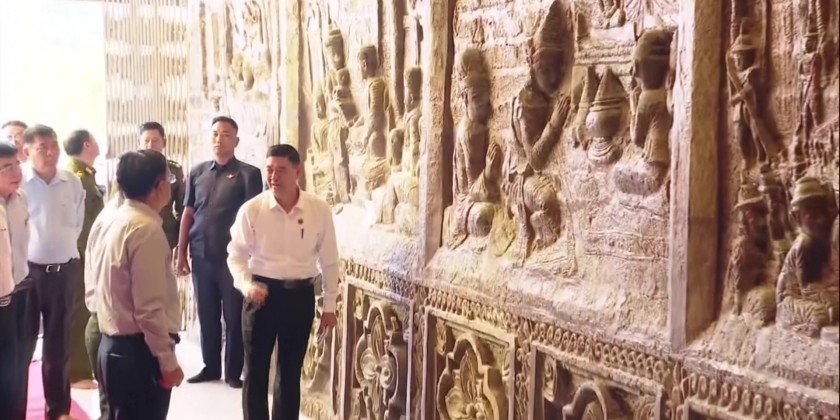 Responsible officials provided briefings on the progress of the works. Afterwards, the Executive Chief and officials paid homage to the Maravijaya Buddha Image and the Abhaya Rajamuni Buddha Image, and inspected the completion status of heat resistant marvel tiles paving works laid on the pagoda platform.