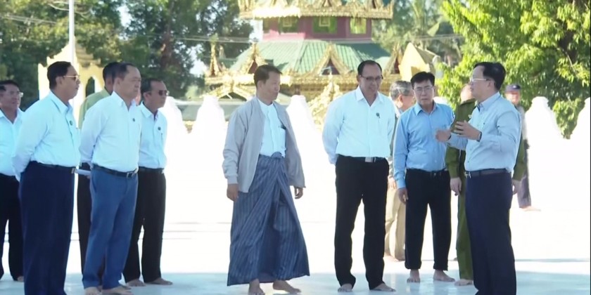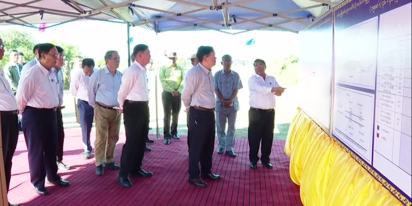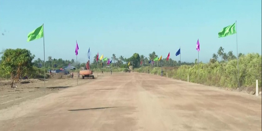 Subsequently, the Executive Chief and officials proceeded to inspect the ongoing construction of an earthen access road measuring 1,580 feet in length, leading from the front of the Allodawpyi Monastery to Sittwe Airport. Following briefings by responsible officials on the progress of the works, the Executive Chief provided necessary guidance and conducted an inspection along the entire road by vehicle.