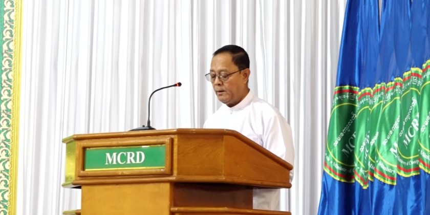 The Department of Small-Scale Industries under the Ministry of Cooperatives and Rural Development held a ceremony to distribute project support materials and equipment implemented with the Mekong-Lancang Cooperation Special Fund (2024) at the Ministry's meeting hall on July 2nd and the Union Minister U Hla Moe attended and delivered the opening remarks.