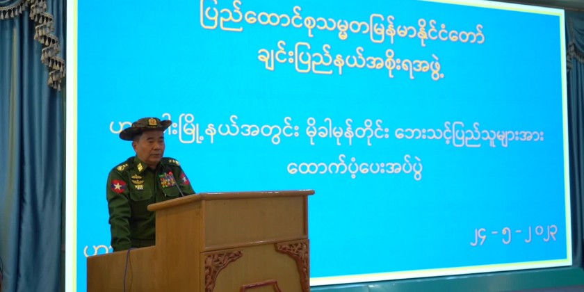 At the event, Lt-Gen Min Naing from the Ministry of Defense clarified the rehabilitation and reconstruction tasks and urged for cooperation in the efforts.