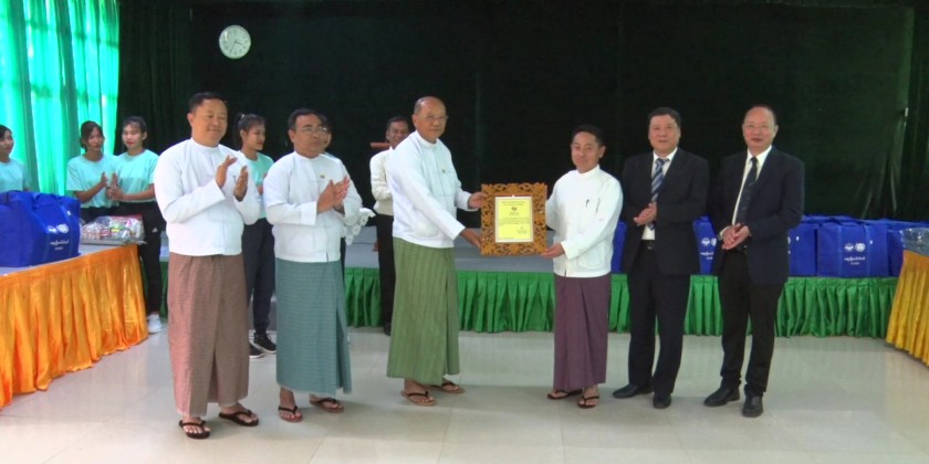 Representatives from the Myanmar-China Cooperation and Communication Association then formally handed over the donated supplies to the Union Minister and Deputy Ministers. In return, the Union Minister presented certificates of appreciation to the donors and expressed his gratitude.