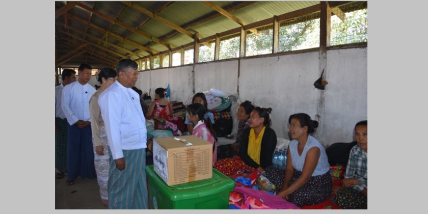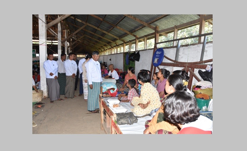 Union Minister for Religious Affairs and Culture U Tin Oo Lwin met with the fire-affected residents who had been temporarily relocated to the temporary rescue camp at Tapaung Field, Yan Aung Ward (2), Pyinmana Township, and donated relief supplies on December 2. The fire broke out in the evening on December 31, 2025, at Yan Aung Ward (2), Area (16) in Pyinmana Township, Nay Pyi Taw Union Territory.