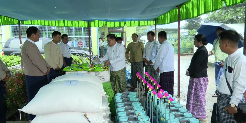 At the event, Kachin State Chief Minister U Khet Htein Nan delivered a speech and officially handed over 150 complete rice seeders to the respective township agriculture officers. Additionally, various agricultural inputs were distributed to lead farmers, including pure rice seed bags, vegetable seed bags, chemical and organic fertilizers, pesticides, fungicides, foliar spray nutrients and spraying equipment. These items were also displayed for inspection during the event.