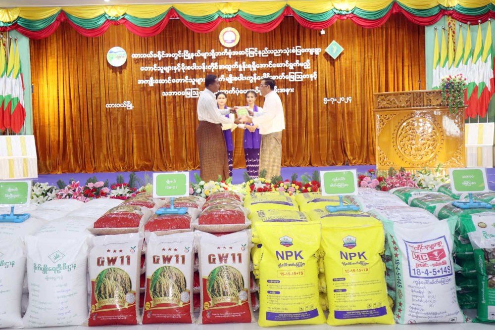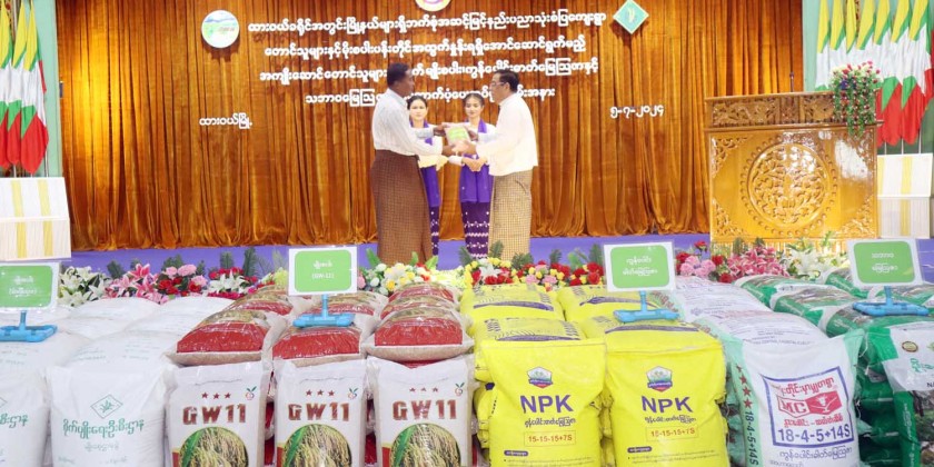 The occasion of providing rice seeds and compound fertilizer for the farmers of the model village utilized comprehensive advance technologies and contributor farmers in the Townships of Dawei District in Taninthayi Region was held at the hall of Dewei Township in the morning on Friday.
