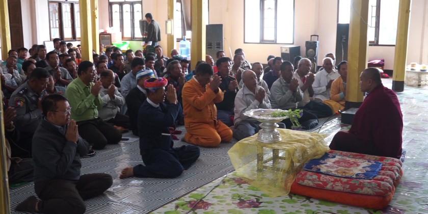 First, the Chairman of Pa-O Self-Administered Zone Administrative Body, U Khun Ye Htwe, along with other officials, paid respects to the abbot of the Nam Kut Village monastery.