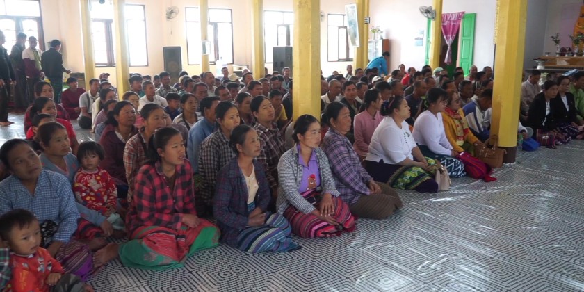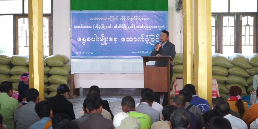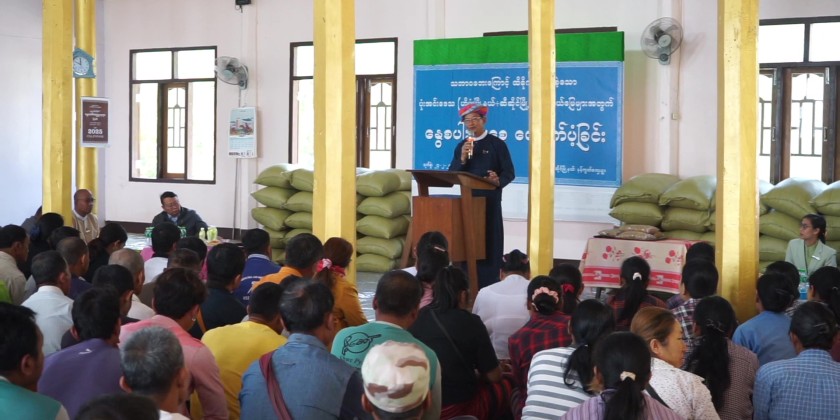 In the a ceremony to distribute summer paddy seeds for farmlands damaged by natural disasters in Hopong and Hsihseng Townships was held at the monastery in Nam Kut Village, Banyin Village Tract, Pa-O Self-Administered Zone, Shan State (South).