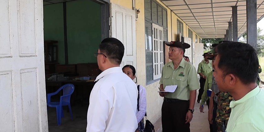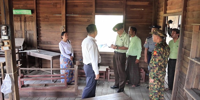 Later, the State Chief Minister and officials visited Hmon Pya Primary School. They met with the headmistress and school trustees, instructing them to renovate the school buildings to ensure a good appearance for the resumption of classes, and to collectively work towards maintaining the cleanliness and pleasantness of the school and its surroundings. They then coordinated with responsible officials on the necessary arrangements.