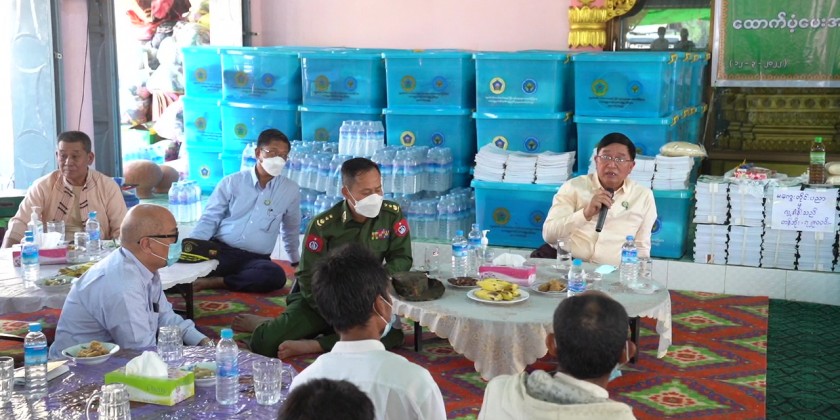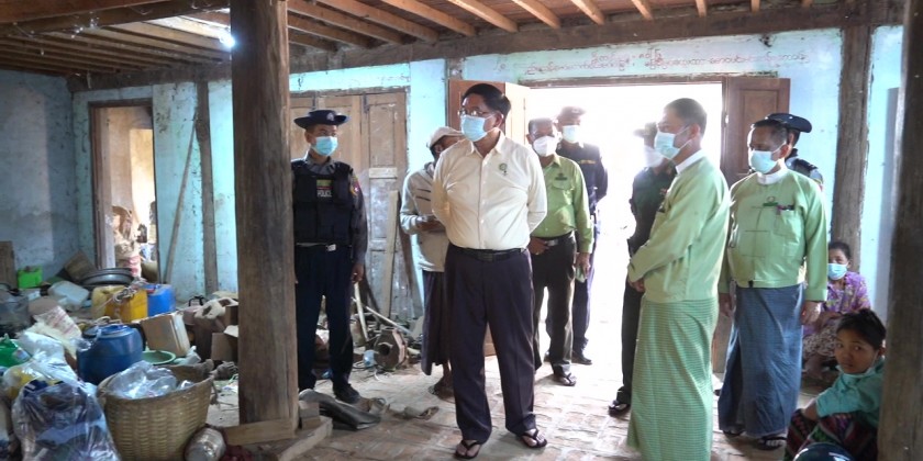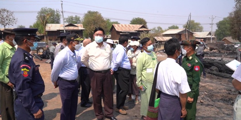 Magway Region Chief Minister U Tint Lwin visited KaiMaGyi Village in Minbu District to provide assistance to fire victims.