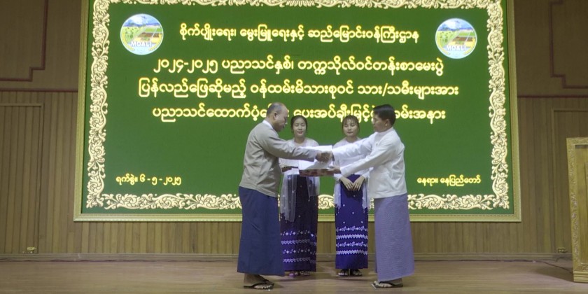 A ceremony for the provision of cash assistance to the children of civil servants under the Ministry of Agriculture, Livestock and Irrigation, who will be re-taking the Grade-12 examinations for the 2024–2025 academic year, was held at Meeting Hall of office No. (15) in Nay Pyi Taw on May 6.