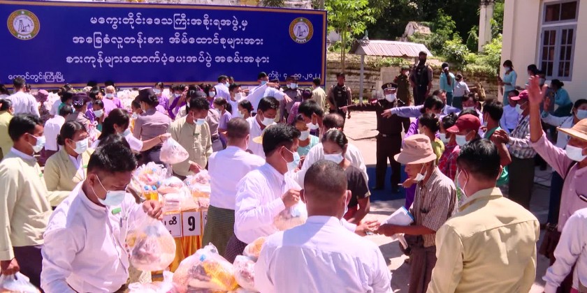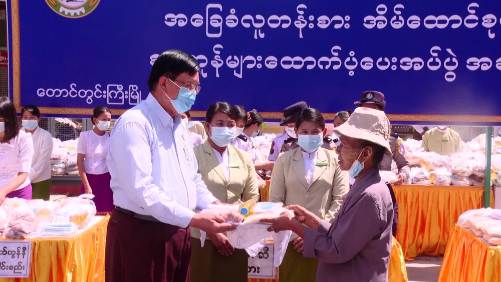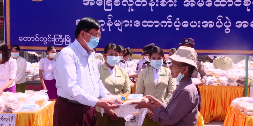 The chief minister U Tint Lwin and region ministers, patron and members of region Women’ Affairs Federation and well wishers provided rice, cooking oil, salt, chickpea, onion and Masks to the 750 low income families, it’s reported.