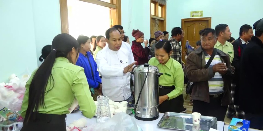 First, the retired civil servants who attended the event were treated to a breakfast. The Chief Minister of Sagaing Region and other region government members warmly welcomed and introduced the retired civil servants from various departments within the region, before presenting them with nutrition supplements, including eggs, for a total of 650 retired civil servants.