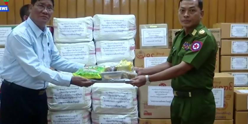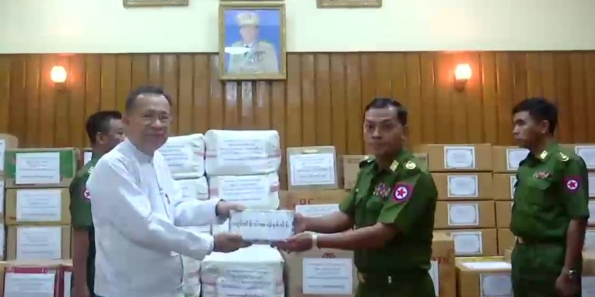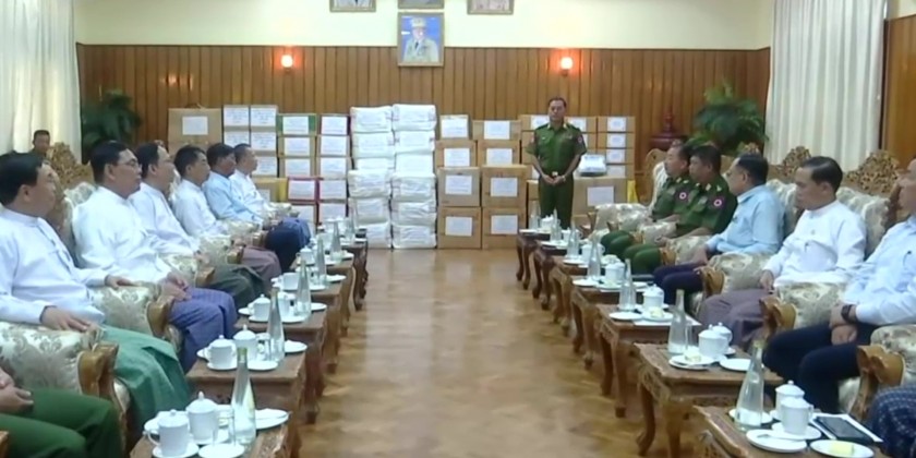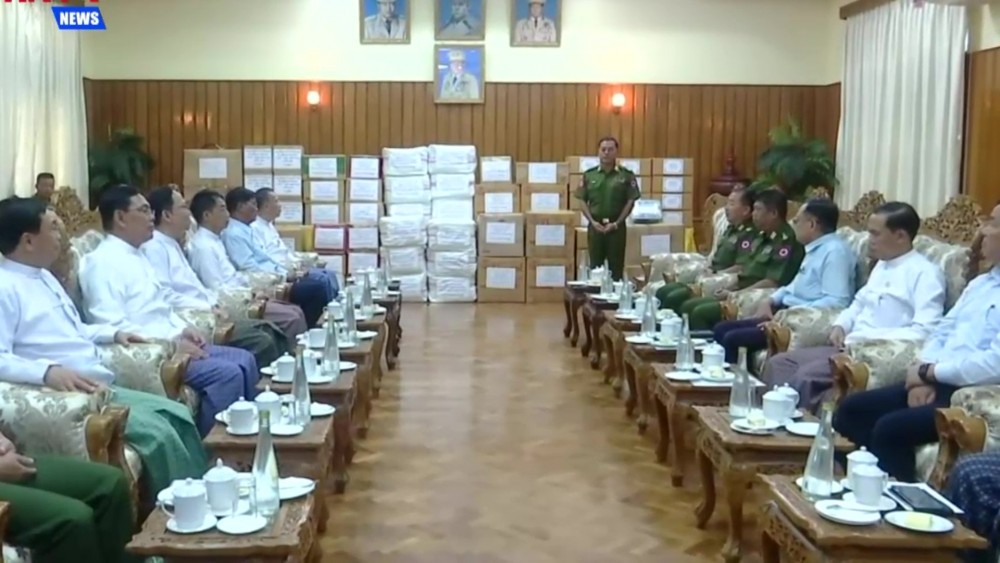 During the event, 5.2 million kyat cash assistance and 1.8 million kyat worth foodstuff from the Ministry of Investment and Foreign Economic Relations, over 12 million kyat worth foodstuff from the Ministry of Electric Power, 10 million kyat cash assistance and 10 million kyat worth foodstuff from the Ministry of Commerce, 10 million kyat cash assistance and over 22 million kyat worth foodstuff from the Ministry of Health, 10 million kyat cash assistance and over 14 million kyat worth foodstuff from the Ministry of Construction, and 10 million kyat cash assistance and 20 million kyat worth foodstuff from the families of Nay Pyi Taw Council were presented to the Commander. These provisions will be distributed to the members of security forces.