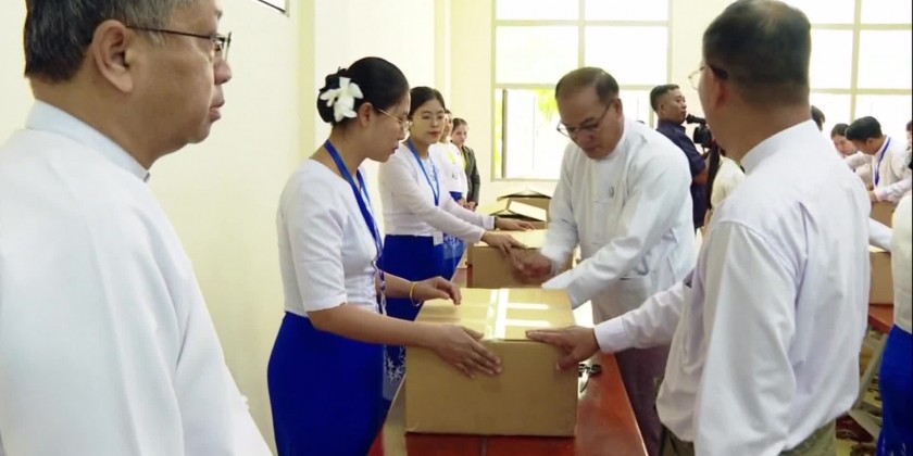 On Friday, Union Ministers Admiral Moe Aung, U Ko Ko Hlaing, and U Aung Kyaw Hoe, along with Deputy Minister Maj-Gen Khun Thant Zaw Htoo, U Htin Kyaw Thu and departmental heads observed the packaging of basic foodstuff by the staff families of Ministries at the Chairman of the State Administration Council offices (1), (2), (3) and (4) for Tatmadaw Members and security forces.