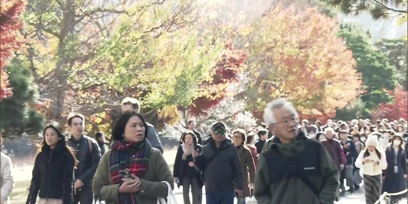 The general public can now enjoy autumn foliage inside the grounds of Tokyo's Imperial Palace. The 600-meter-long Inui-dori, a street that runs through the palace grounds, is open to the public for nine days from Saturday. No reservation is required. The avenue is lined with about 70 maple trees of eight different varieties. The Imperial Household Agency said after a long spell of unseasonably warm weather, maple leaves started to change color around mid-November.