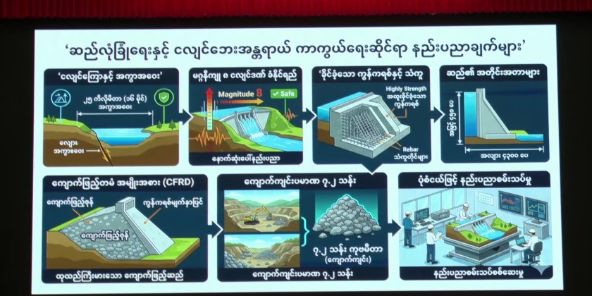 During the session, Kachin State Local Committee members gave presentations on topics such as academic research findings, geological observations, global water resources, electricity generation, and comparisons with modern, developed countries in relation to the Ayeyawady Confluence–Myitnge Hydropower Project.