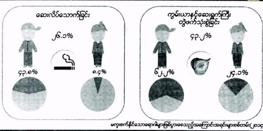 According to the statistics of World Health Organization (WHO), it is found that 86% of death rate between the age of 30-70 years in developing countries are due to (NCDs). In Myanmar also, about two-third of deaths in hospital and clinics were due to non-communicable diseases in 2018. One of the causes of non-communicable diseases is cigarette smoking and tobacco use and it is also preventable disease. According to 2014 surveys, 54.4 %of adults in Myanmar are consuming some form of cigarette or tobacco.