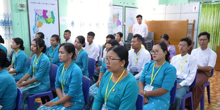 The trainees have to attend 3-month off-campus training course at the Department of Public Health in Yangon, Bago, Ayeyawady and Magway Regions and Shan State (Taunggyi), followed by 6-month on-campus training at the University of Community Health (Magway). The training will run until 30th September and a total of 54 trainees are attending the training course.