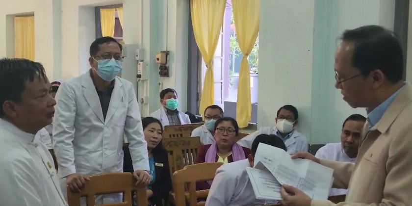 Members of the State Administration Council Daw Dwe Bu and Dr. Hmu Htan as well as Union Minister for Health Dr. Thet Khaing Win visited the Myitkyina People’s Hospital.
