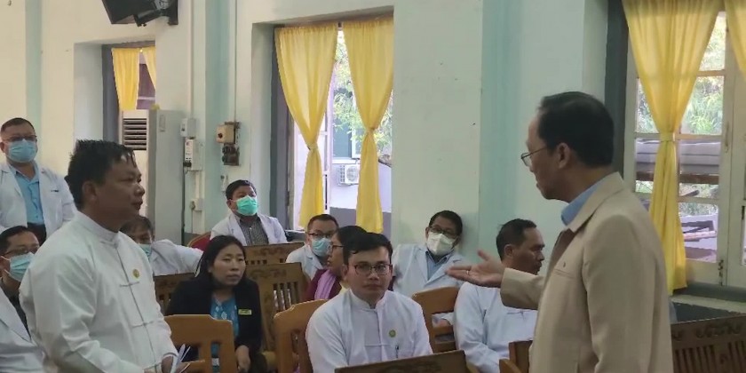 There, in the meeting with the state/district/township-level healthcare experts and workers, the SAC Member Daw Dwe Buexpressed words of thanks for healthcare services to the public and pledged to provide aid to the Hospital. In his part, Union Minister Dr. Thet Khaing Win highlighted the Ministry’s efforts including hospitals upgrade, infrastructure construction, medicines and equipment providing for the public healthcare services.