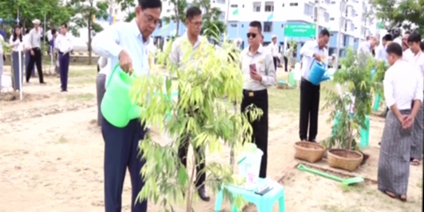 The opening ceremony of Thukha Waddy Public Housing took place in Dekkhina Thiri Township of the Union Territory Nay Pyi Taw on Saturday. Union Minister for Construction U Myo Thant officially inaugurated the ceremony together with the officials. They also unveiled the public housing signboard.