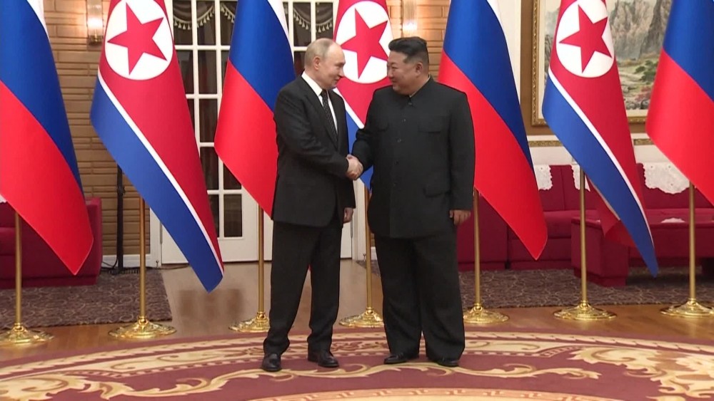 Russian President Vladimir Putin and North Korean leader Kim Jong Un signed a "strategic partnership treaty" following their talks in Pyongyang on Wednesday, Russian state media reported. The two leaders also exchanged gifts during the visit. Kim said earlier relations with Russia had reached a new high point, and that Putin's visit would strengthen their countries' "ardent friendship".