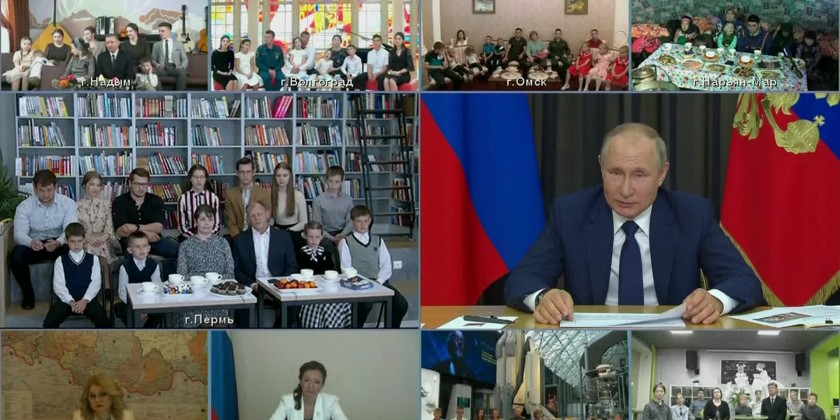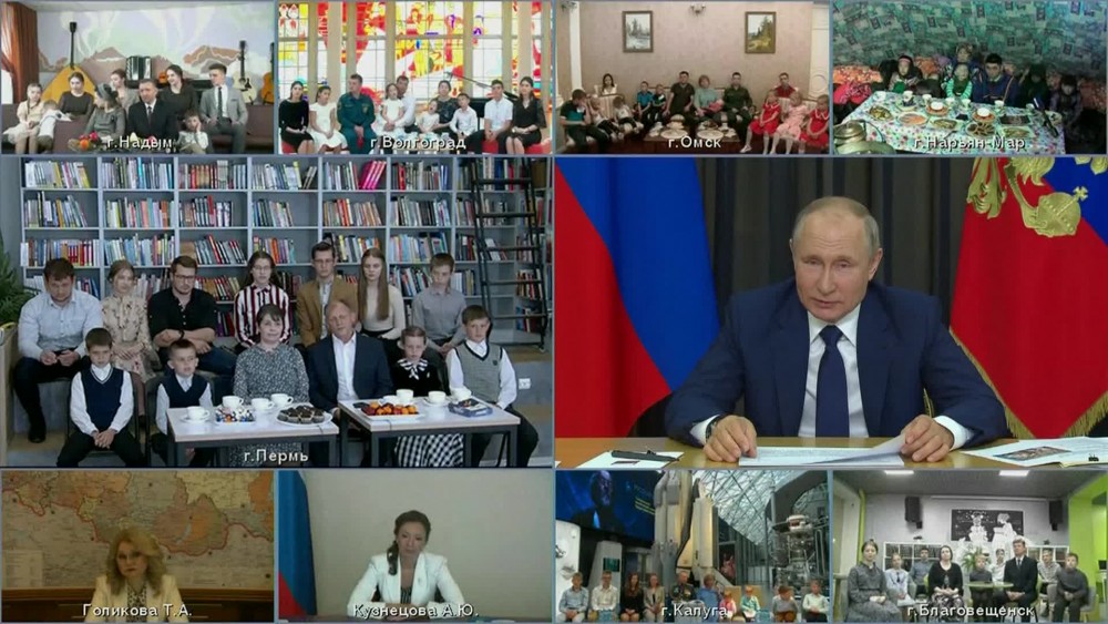 Russian President Vladimir Putin on Tuesday held a video meeting with families awarded the 'Order of Parental Glory' during Children's Day celebrations in Russia. "Families with many children are the basis of Russia's future," Putin told the recipients of the award which is presented to parents of large families in Russia.