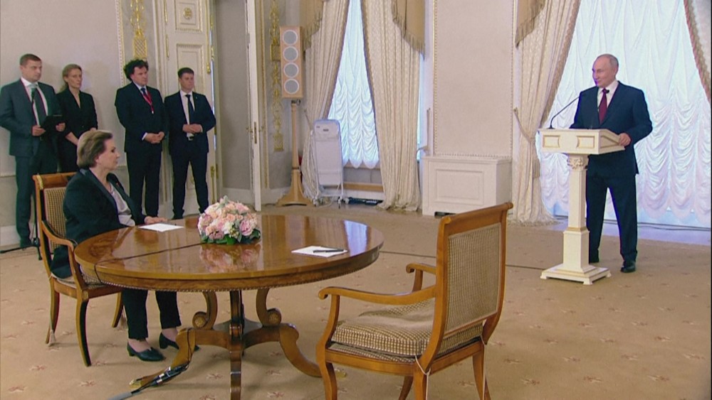 As Putin met Tereshkova on the 60th anniversary of her flight, he awarded her with the newly established Gagarin order "for outstanding services in the exploration of outer space" and "active public and international activities," according to a Kremlin statement. Tereshkova has been a member of the State Duma for the ruling United Russia party since 2016.