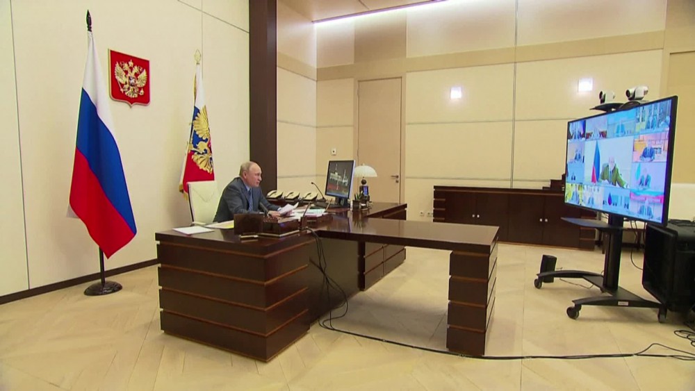 Russian President Vladimir Putin held a government meeting by video conference on Wednesday. It came a day after a doctor who met him last week said he had been diagnosed with the highly infectious virus. The Kremlin, which has said that everything is fine with Putin's health, said the president was now keeping his distance from other people and preferred to work remotely.