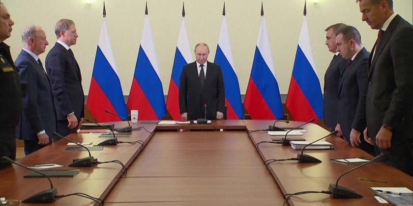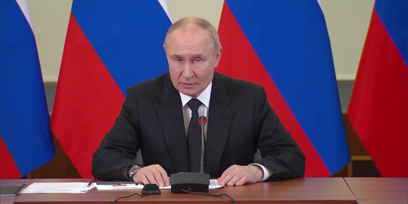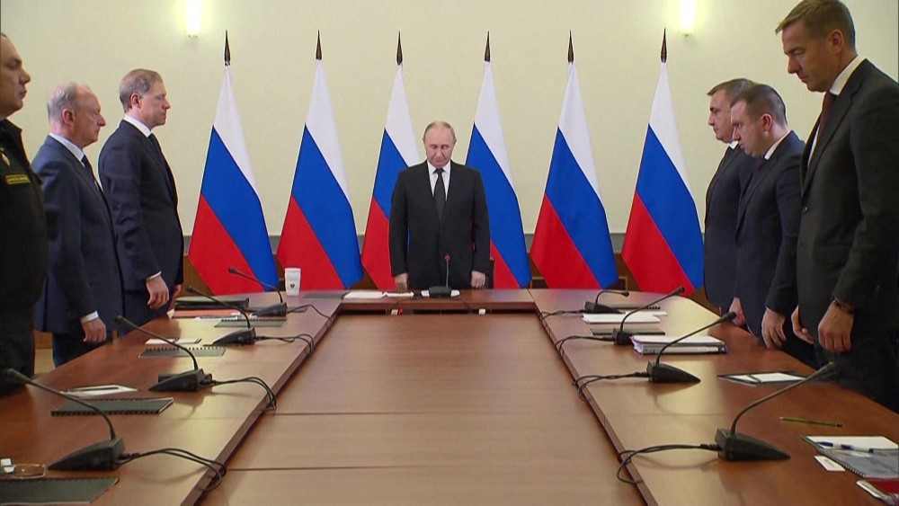 Russian President Putin expressed his condolences and holds a moment of silence following a deadly plane crash, as he speaks at a meeting to discuss the development of the Russian Navy. The passenger plane carrying nearly 50 people crashed in a remote area of Russia's far eastern Amur region, killing all on board, according to authorities.