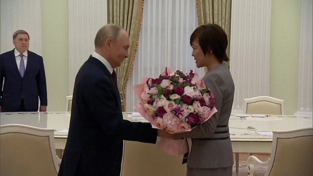Russian President Vladimir Putin has met Abe Akie, the widow of the late Japanese Prime Minister Abe Shinzo in Moscow. The meeting took place at the Kremlin on Thursday. She described Russia as a "very important neighbour for Japan," and said she would be happy if cultural exchanges between the two countries could develop.